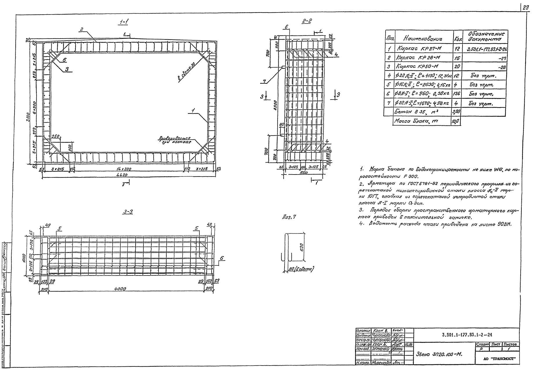 Железобетонные ЗП 20.100-М для прямоугольных водопропускных труб армируются сетками и каркасами из стержней периодического профиля из углеродистой горячекатаной стали класса А-II. Монтажные петли конструкций изготавливаются из стержневой гладкой горячекатаной арматурной стали класса А-I или периодического профиля класса Ас-II.